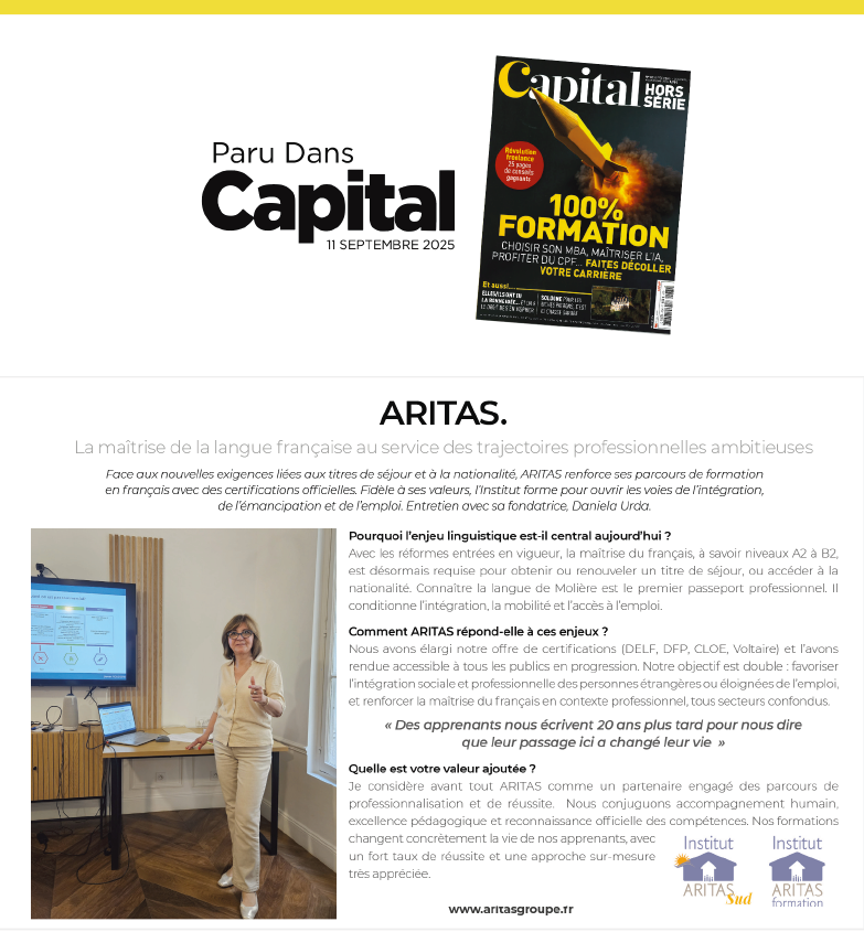 L’Institut ARITAS a eu l’honneur de paraître dans le magazine Capital le 11 septembre 2025.