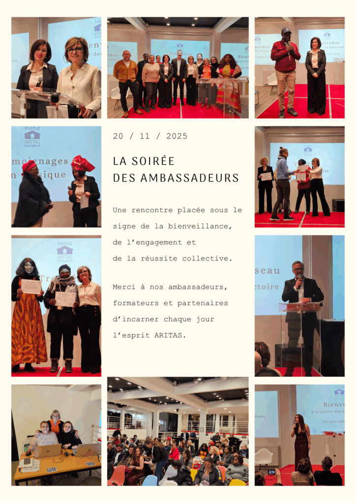 Le 20 novembre 2025, a eu lieu la soirée des ambassadeurs organisée par l’Institut ARITAS formation, un temps fort dédié à la valorisation de celles et ceux qui contribuent chaque jour à faire rayonner nos actions…